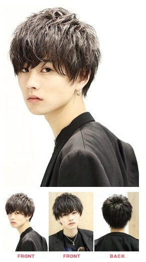 マッシュにパーマをかけた動きのあるスタイルです。上の写真と比べると、サイドも少し長めですね。